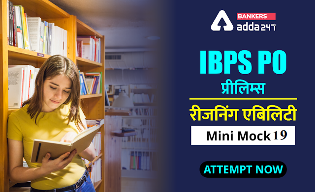 Reasoning Ability section बैंकिंग परीक्षा का एक स्कोरिंग सेक्शन है. यदि आपके बेसिक्स क्लियर करने के लिए अधिक से अधिक क्विज की प्रैक्टिस करते हैं और स्टडी प्लान को पूरी तरह से फॉलो करते हैं, तो आप इस परीक्षा को आसानी से क्रैक कर सकते हैं. Hindi Bankersadda, IBPS PO प्रीलिम्स 2020 परीक्षा के लिए Reasoning Ability क्विज़ में सभी important और expected प्रश्न उपलब्ध कराता है, जिसे रेगुलर बेसिस पर attempt कर आप अपनी तैयारी को और बेहतर बना सकते हैं.